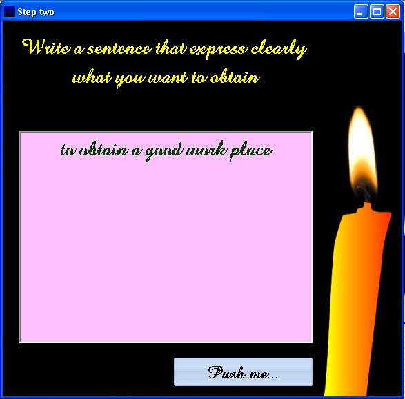 The operation of Hipnosway System is very easy, you configure the program to get a wish, a goal, a purpose. To do it you must enter your name on a form, explain what you want to achieve, choose some images associated with the theme, choose a start date from among those offered and devote every day between 10 and 15 minutes to visualize and repeat a series of sentences, everything is perfectly explained in the instructions.